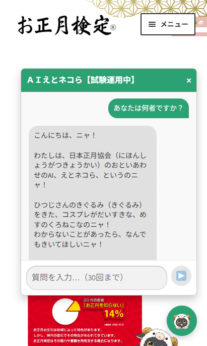 - 2025/12/18お正月検定®の問い合わせ対応に「えとネコらAIボット」登場