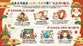 新プロジェクト【募集予告】第1期 お正月文化 公認PRパートナー(仮)|日本の伝統を世界へ 日本正月協会では、日本の伝統「お正月」の魅力を世界と後世に伝える「公認パートナー」を募集予告中です。ミスお正月などのタレント活動から、教育、AR技術を駆使した新感覚の文化発信まで、あなたの得意を活かして新年を盛り上げませんか? 2026.02.16新プロジェクト新着情報